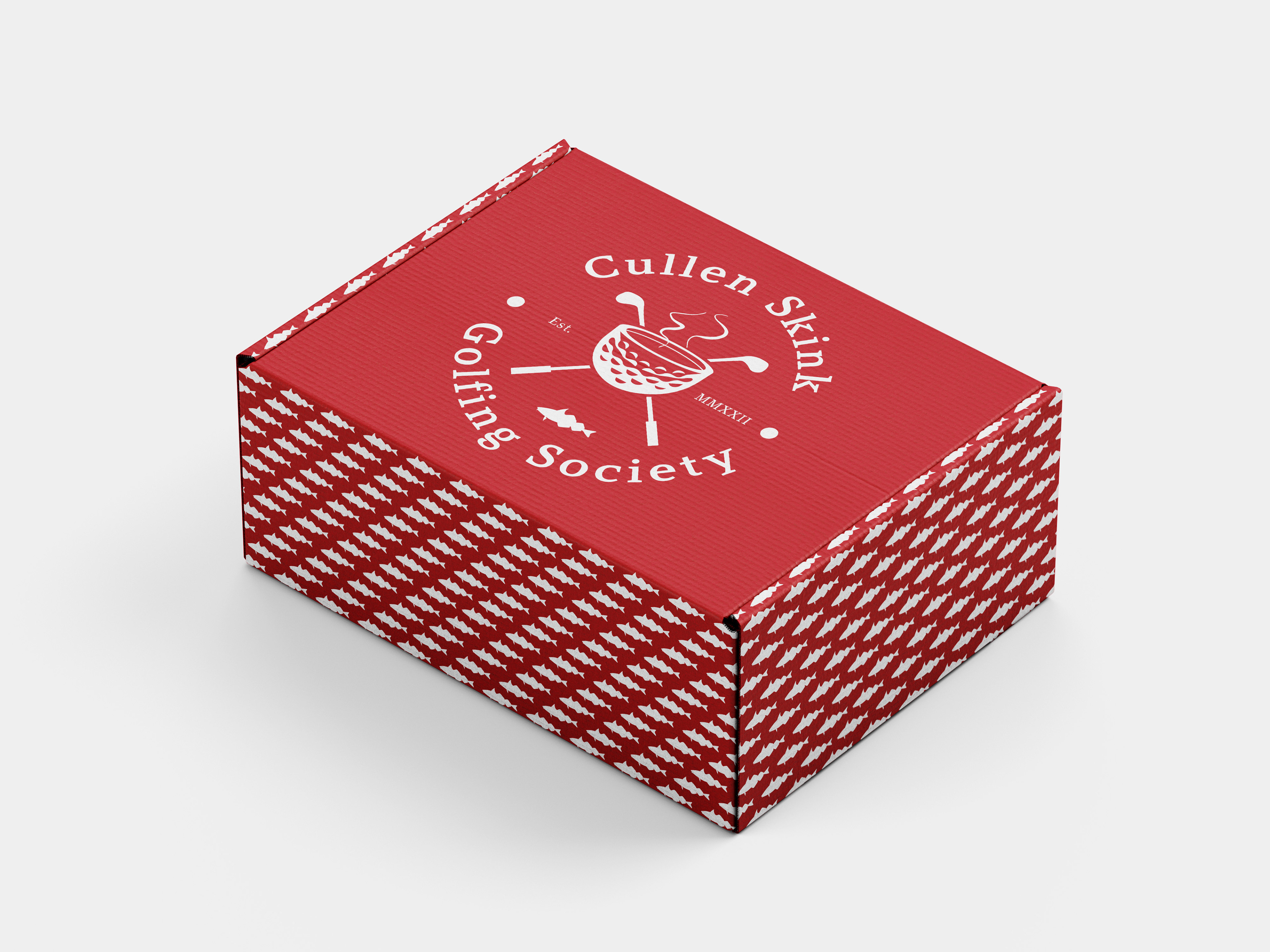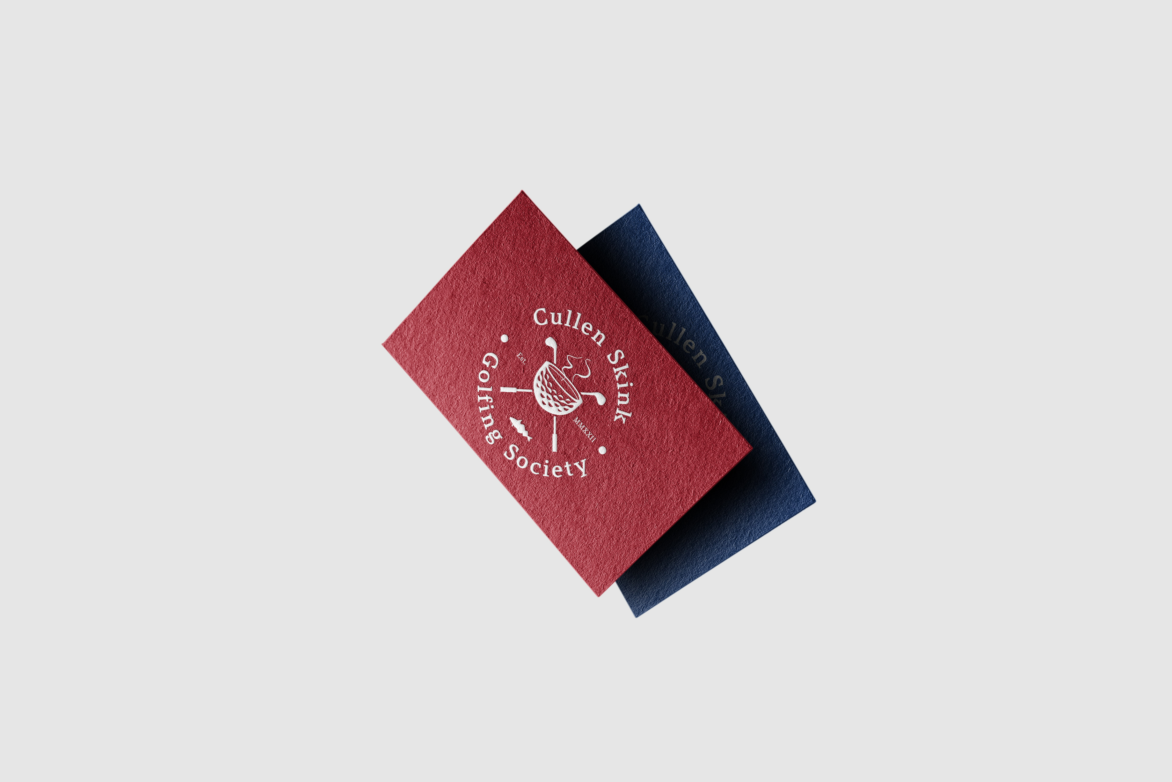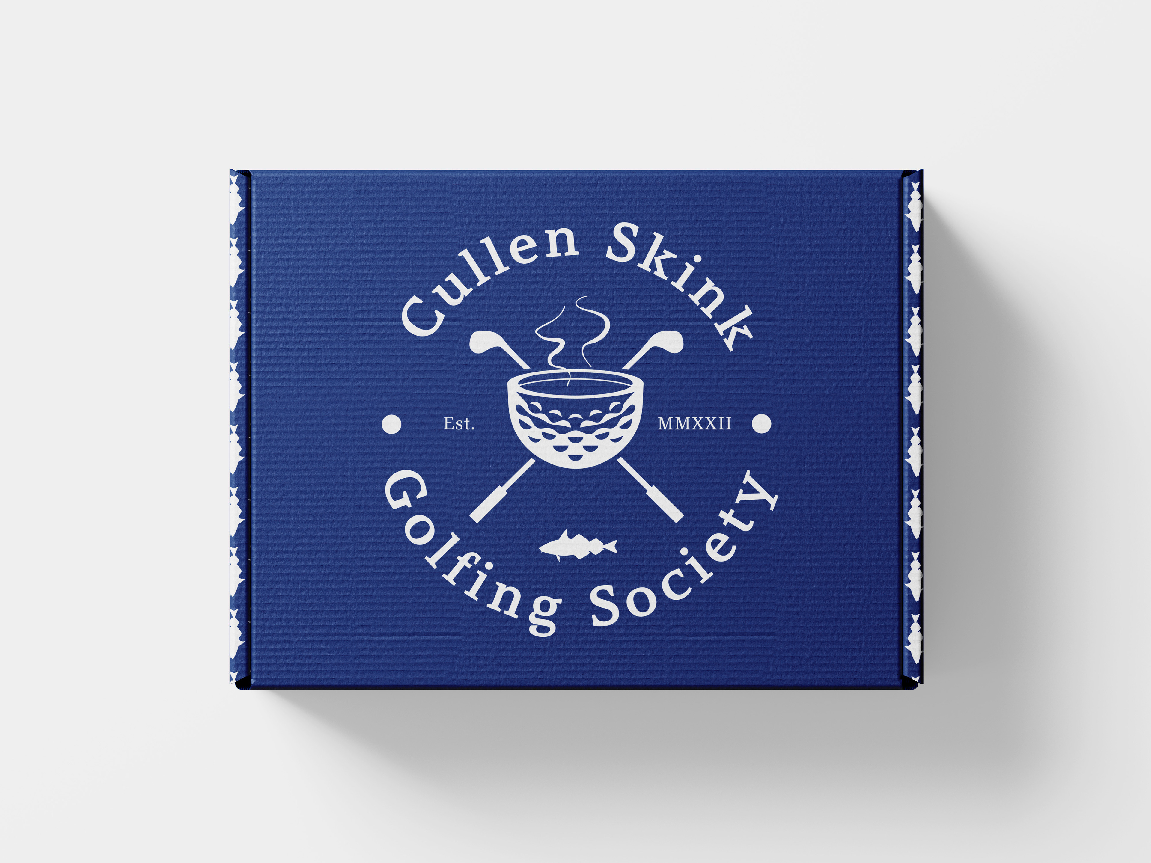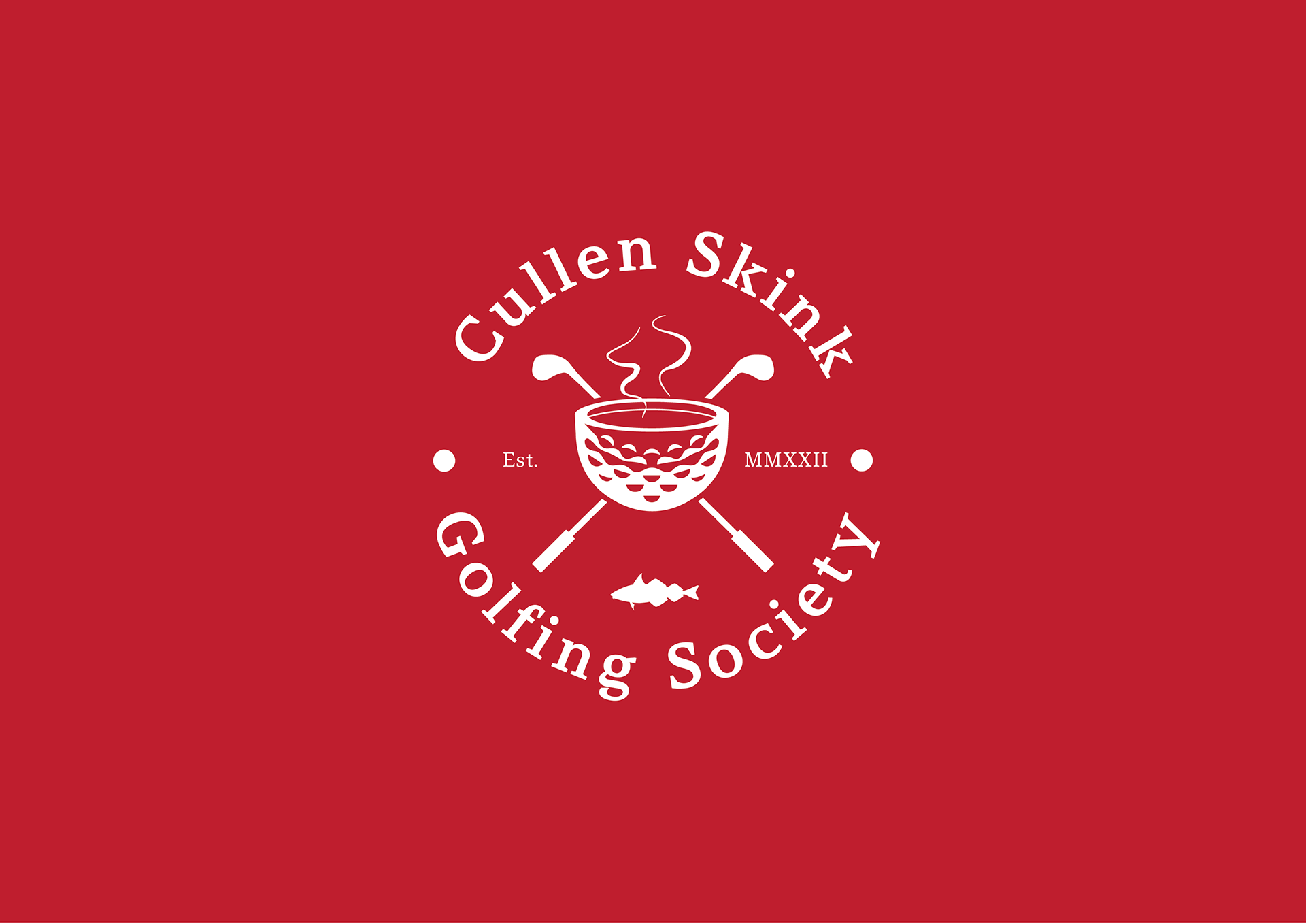 A small friend led golfing society. They wished for the identity to combine elements from one of their first games at the Moray coast in Scotland which was followed by a hot bowl of Cullen Skink.